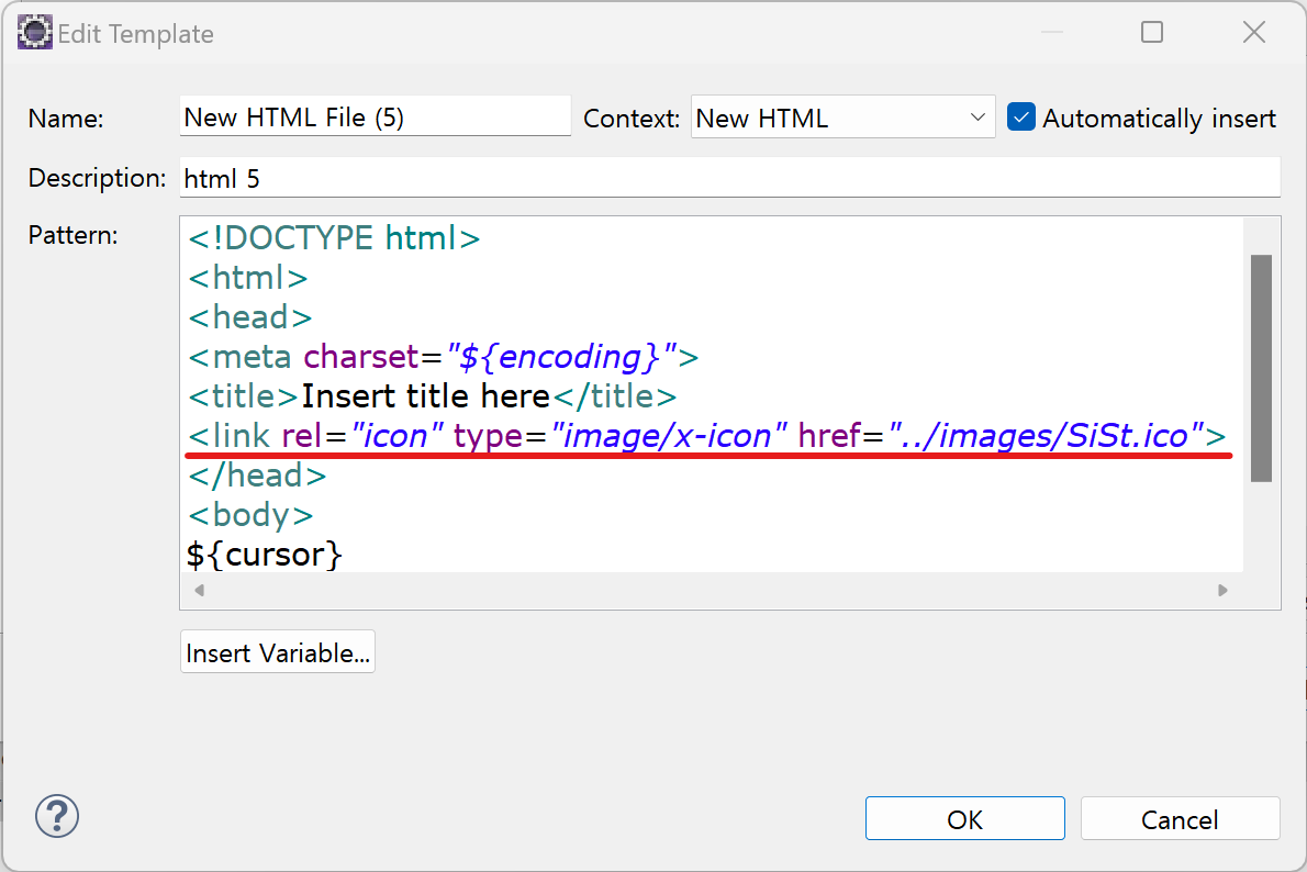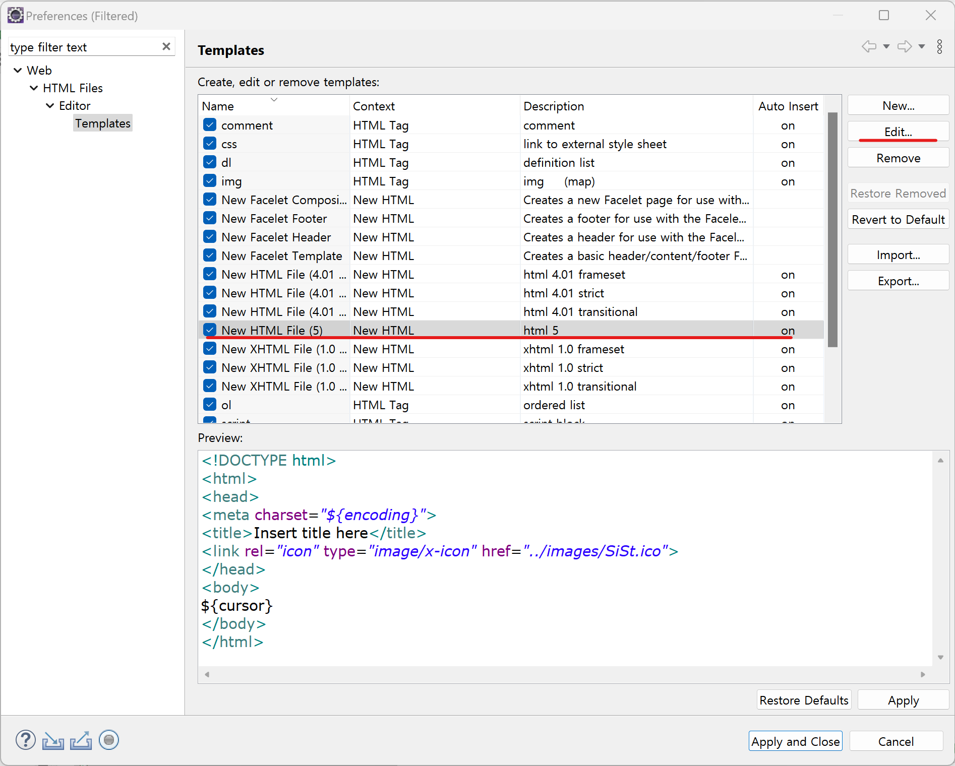 이렇게 설정한 파비콘을 html 파일을 생성할 때마다 적용되게 해주는 것을 이클립스에서 해보려고 한다.