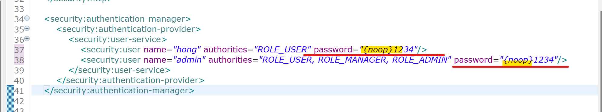 <security:user name="hong" authorities="ROLE_USER" password="1234"/>