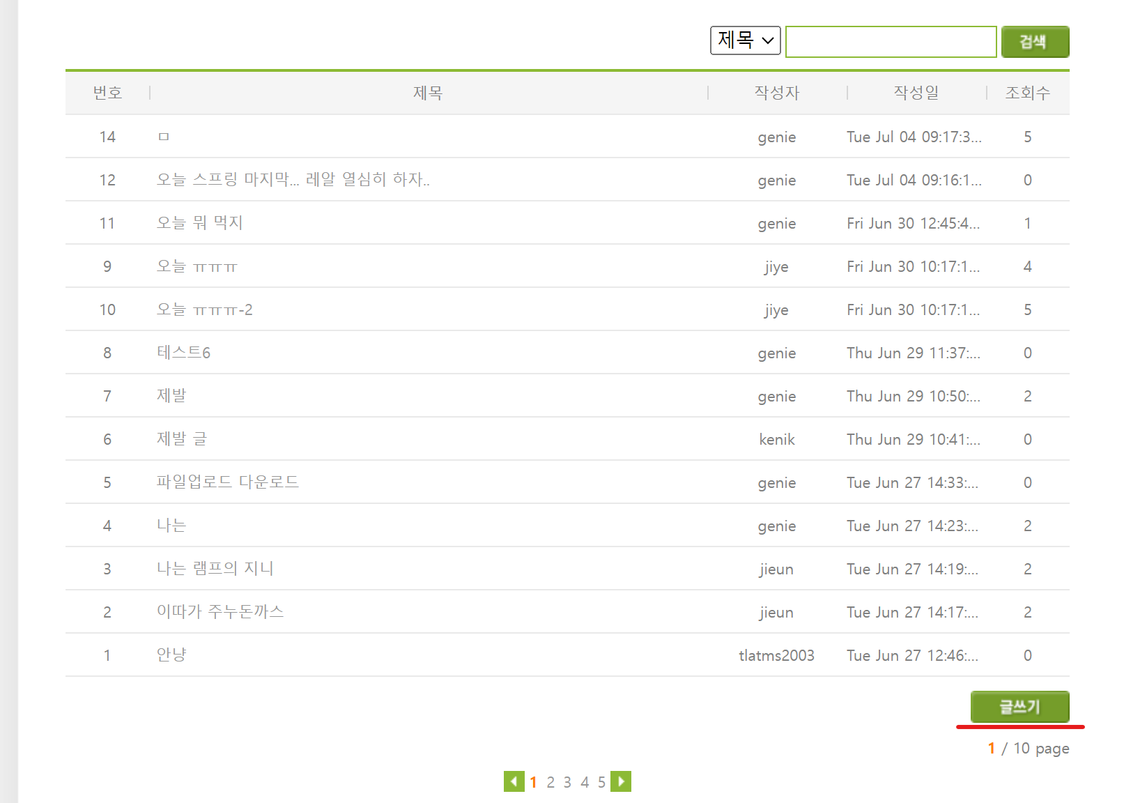 - 게시판 글쓰기는 인증(로그인)해야만 사용가능
