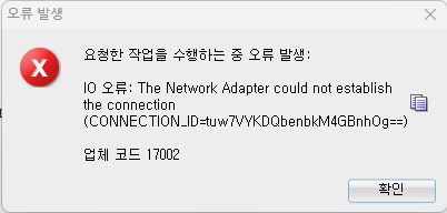 ERROR) SQL Develoer 에러 - The Network Adapter could not establish the connection 해결 방법 요새 자주 발생하는 에러ㅠㅠ 해결방법 또 까먹어서 이번에 블로그에 박제한다. 오랜만에 sql developer에서 쿼리 연습하려했는데, 에러가 발생했다 해결방법) 우선 서비스에 들어간다. 서비스 검색 후 들어가기 OracleXETNSListener 를 우클릭 후 실행한다. 난 이렇게 해줬더니 정상 작동됐다!! error 2023.11.10